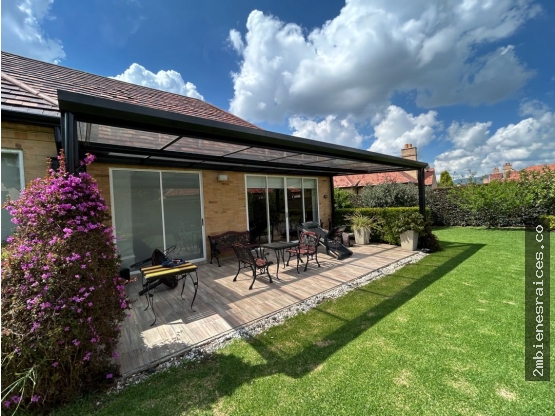 Hall de entrada, sala con chimenea, comedor, baño social, cocina abierta con isla, habitación y baño de servicio, zona de lavandería con depósito, terraza con BBQ y pérgola, hall de alcobas, 3 habitaciones con baño privado y calefacción - la principal con terraza y enorme vestier, amplio altillo